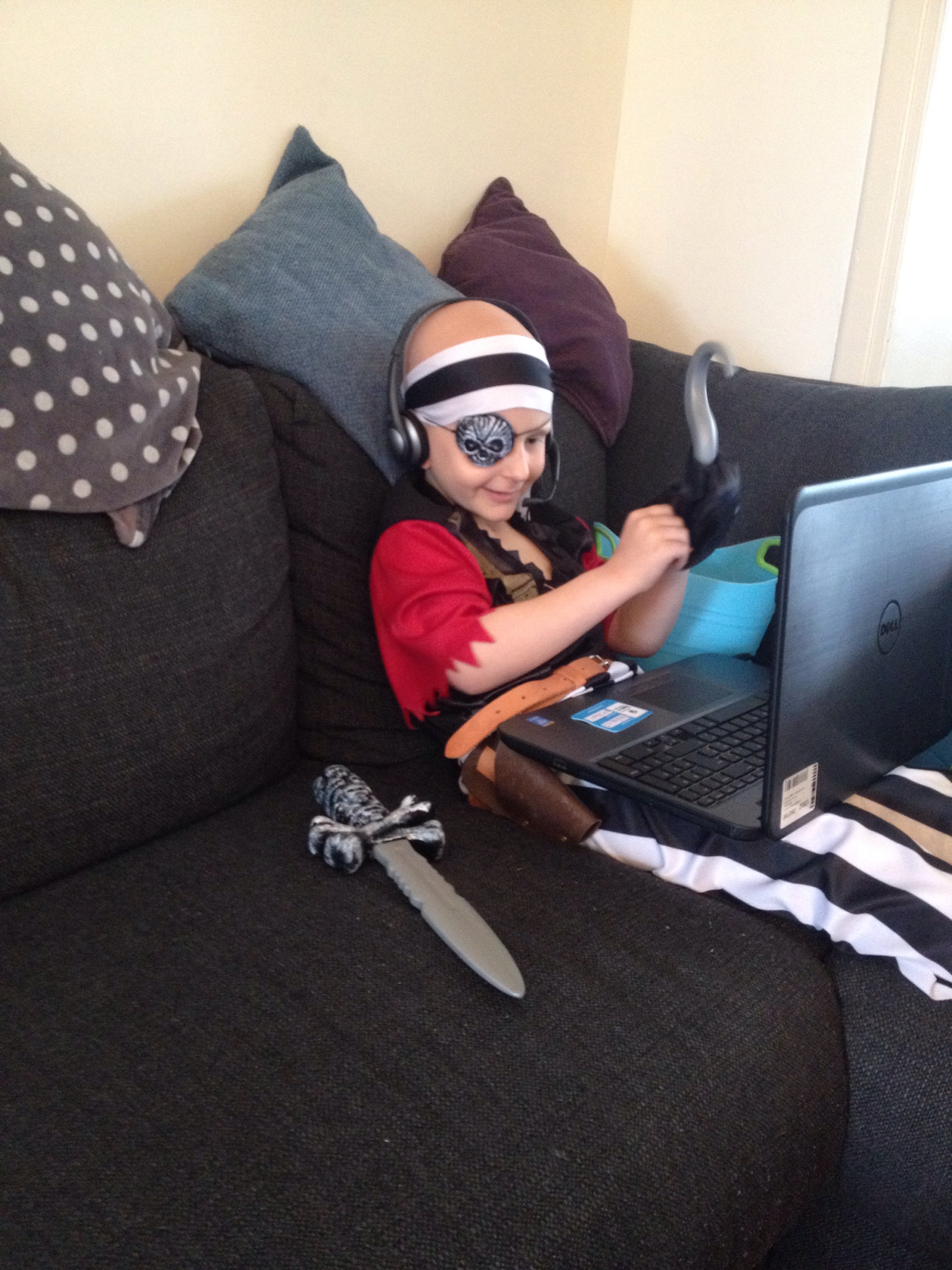 Over de middag mocht Lucas bednetten met Ruth en omdat zij deze week leert over piraten, verkleedde Lucas zich ook als piraat. Ze hadden veel plezier samen. In de namiddag kwam juf Lies voor nog een paar uur thuisonderwijs.