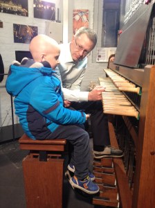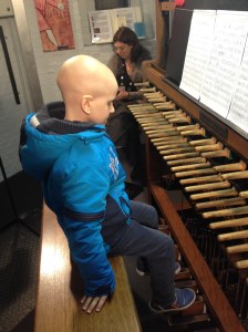 In de beiaardkamer zag Lucas een foto hangen van Inge, zijn muziektherapeute op Gasthuisberg. Eronder stond een doos waarin torenbezoekers een vrije bijdrage kunnen deponeren voor het muziektherapeutisch project van het Kinderkankerfonds van het UZ Leuven. Lucas vond het prachtig!