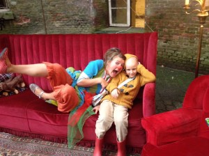 Het feest ging door in Fort 4 te Mortsel, op zich al een imposante locatie. Bij aankomst werden we van de meteen verwelkomd door enthousiaste clowns, een kinderboerderij, knutselhoekjes, een rondrijdende koets met paarden en vooral een schitterend podium. Lucas genoot van de eerste seconde tot de laatste; frietjes, gekke optredens, verhaaltjes, een afsluitende kinderparty en bovenal massa’s ‘practical jokes’.
